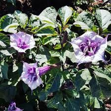 Dhattura (Datura metel) is large, erect and stout an annual herb that grows up to 3 ft. high is known by the Thorn apple plant. It somewhat furry, having dark violet shoots with oval to broad oval leaves which are often dark violet as well