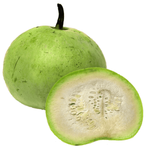 - Plant Description: Prolific vine, typically grown as an annual. Small thorns. Fruit is approximately spherical (5-8 cm diameter), green, apple-sized, flattish round (50-60 grams). White flesh, soft ovate seeds. Mild flavor, similar to bottle gourd. Native to India.